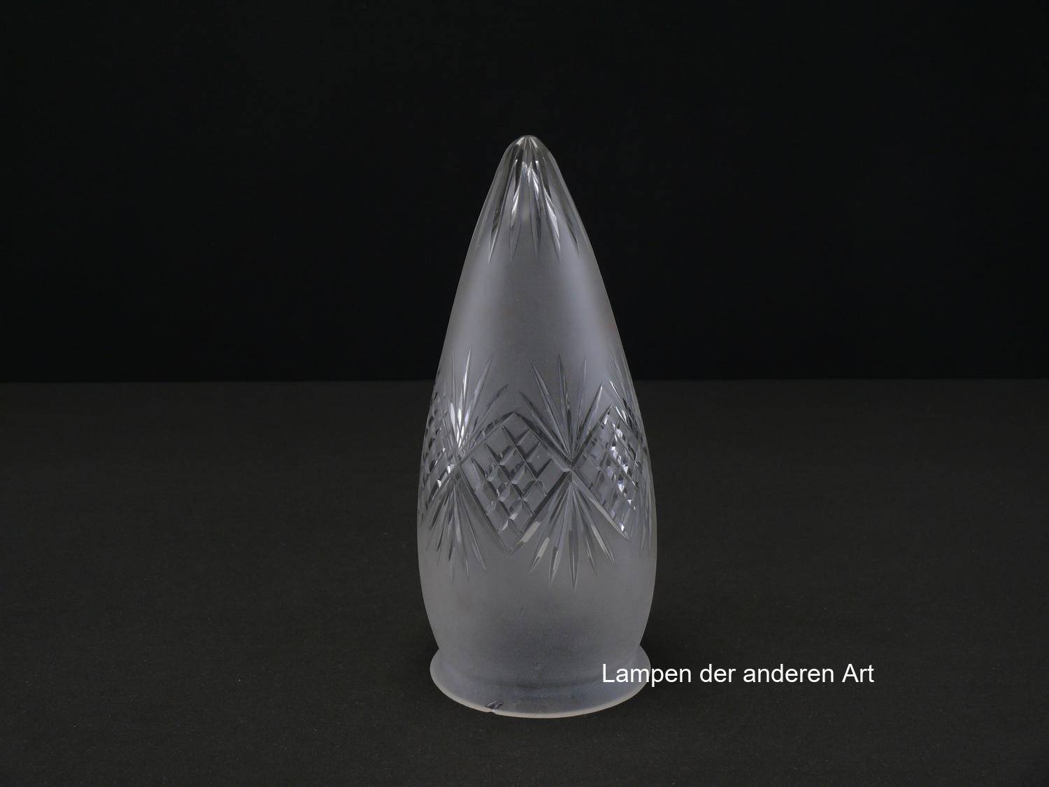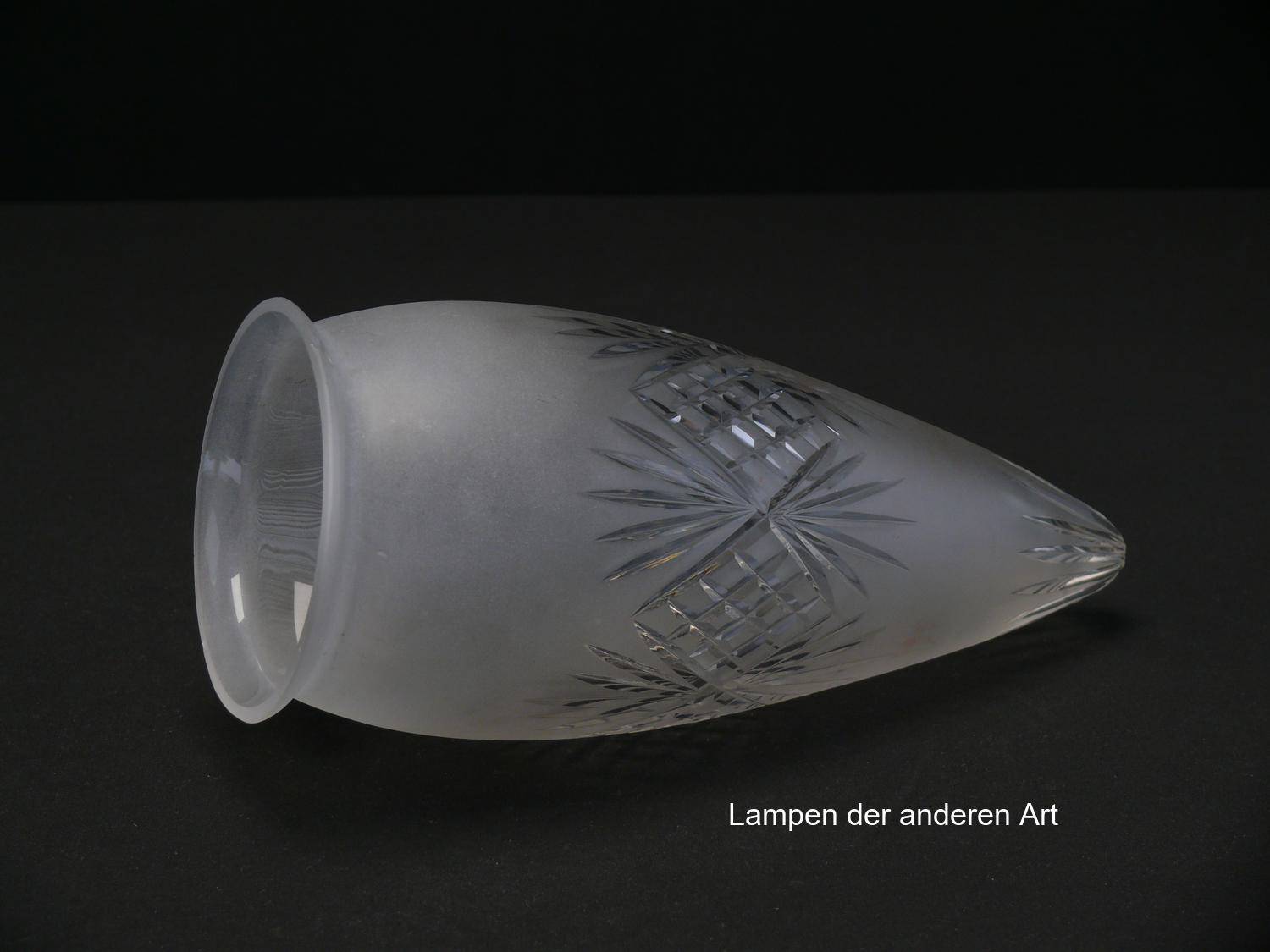 Rarität! - antikes 2-er Set, Jugendstil Lampenschirm gebraucht, grau satiniert, schlanke Zapfenform mit Schliffdekorband, Strahlenschliff in der Spitze, Nostalgie Ersatzschirm für alte Lampen, D: ca.10cm, H: ca.22cm, Glashalter Griffrand Ø10cm - gemesssen ca.9cm, ein Schirm kleiner Chip am Griffrand - siehe Foto