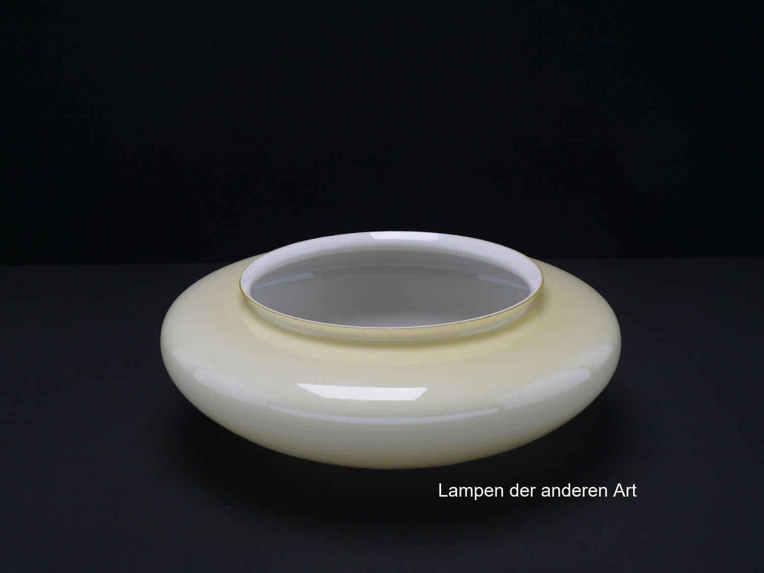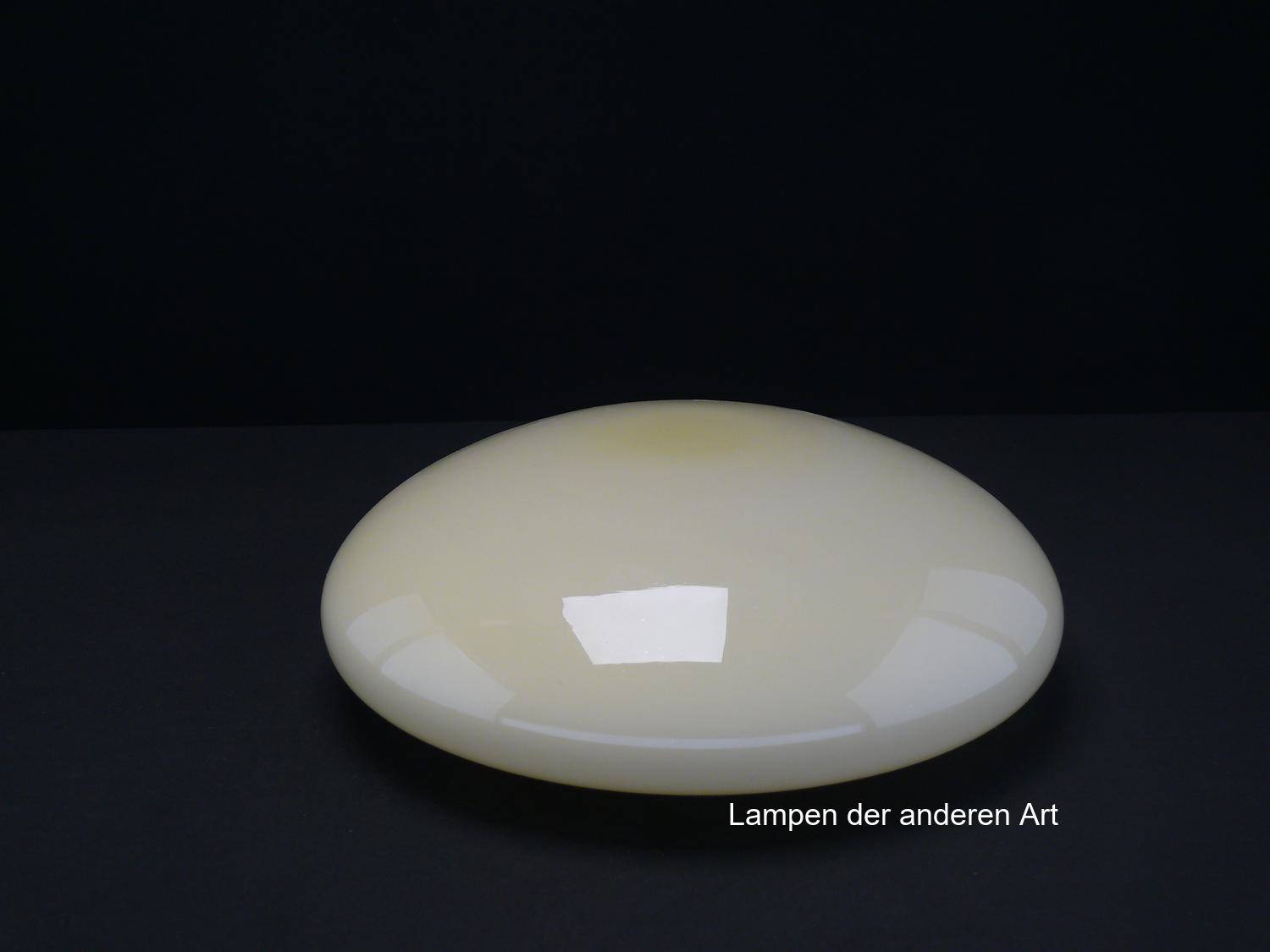 Lampenschirm gebraucht, Glas elfenbeinfarbig, geschlossener Kuppelschirm, D: ca.30cm H: ca.10cm, Ersatzglas für alte Lampen, Glashalter Griffrand 20cm - gemessen 19,5cm