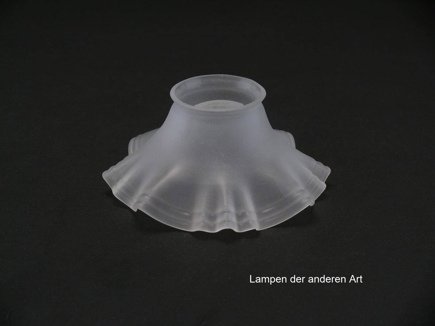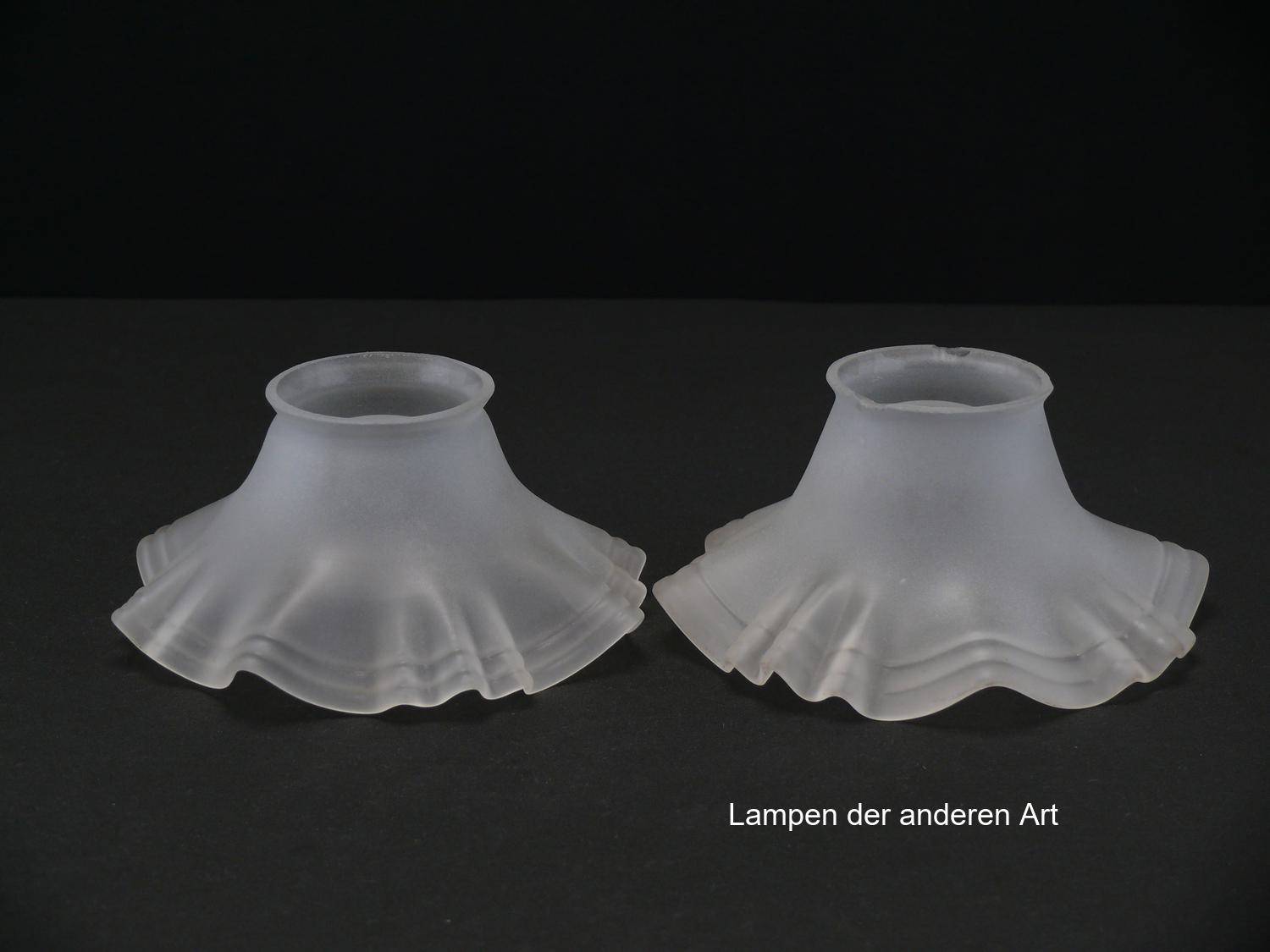 2-er Set Jugendstil Lampenschirm gebraucht, Glas satiniert, kegelförmig aufgezogene Wandung, im Rand zweifach gerillt, Nostalgie Ersatzglas, D: ca.14cm, H: ca.6,5cm, Glashalter Griffrand Ø 6cm - gemessen 5,7cm, Zustand siehe Fotos