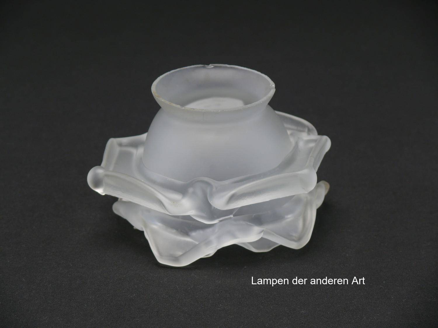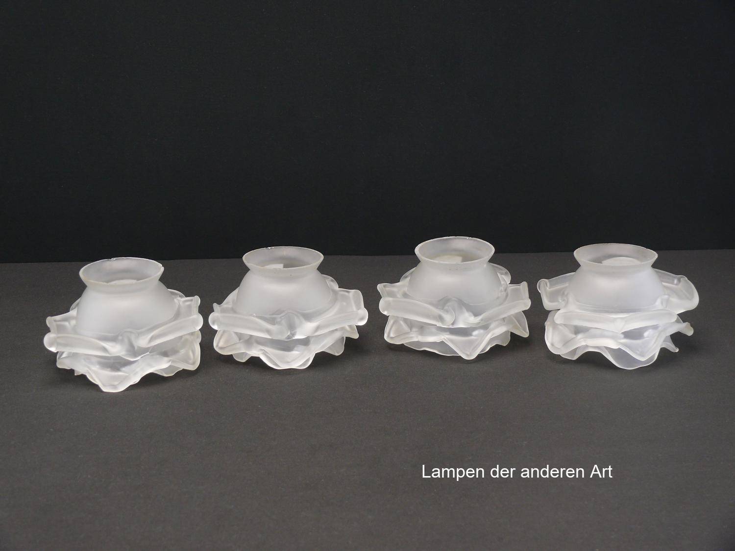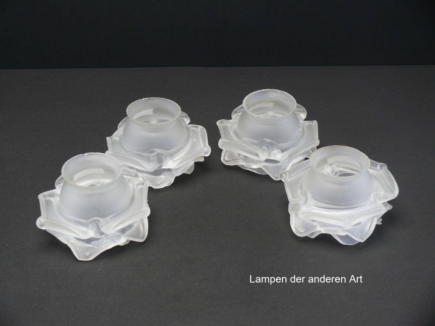 4-er Set Jugendstil Lampenschirm gebraucht, Rosenblattschirme, grau satiniert, Form stilisierte Rosenblüte, Nostalgie Ersatzglas D: ca.11,5cm, H: ca.7cm, Glashalter Griffrand 6cm - gemessen 5,7cm