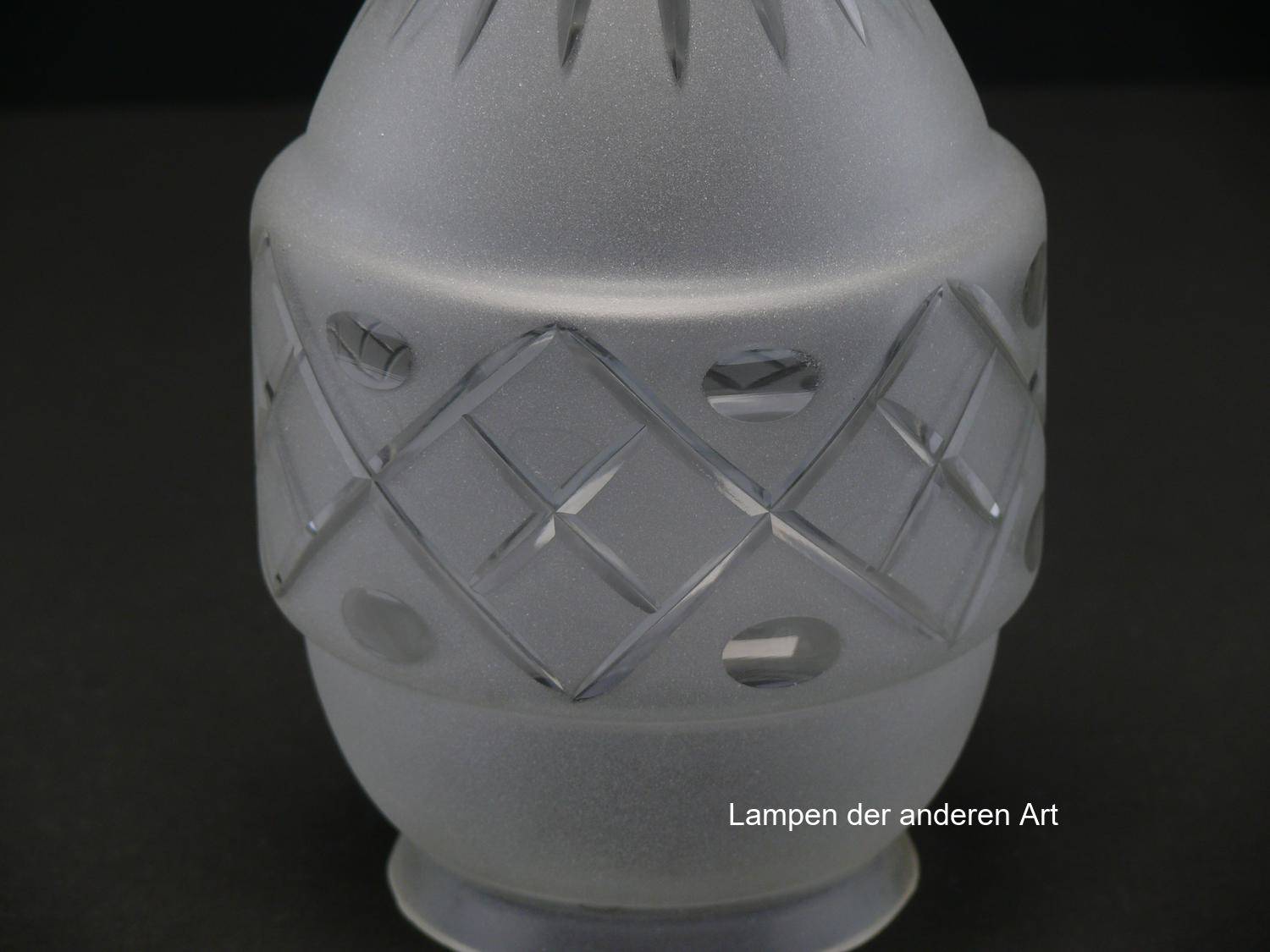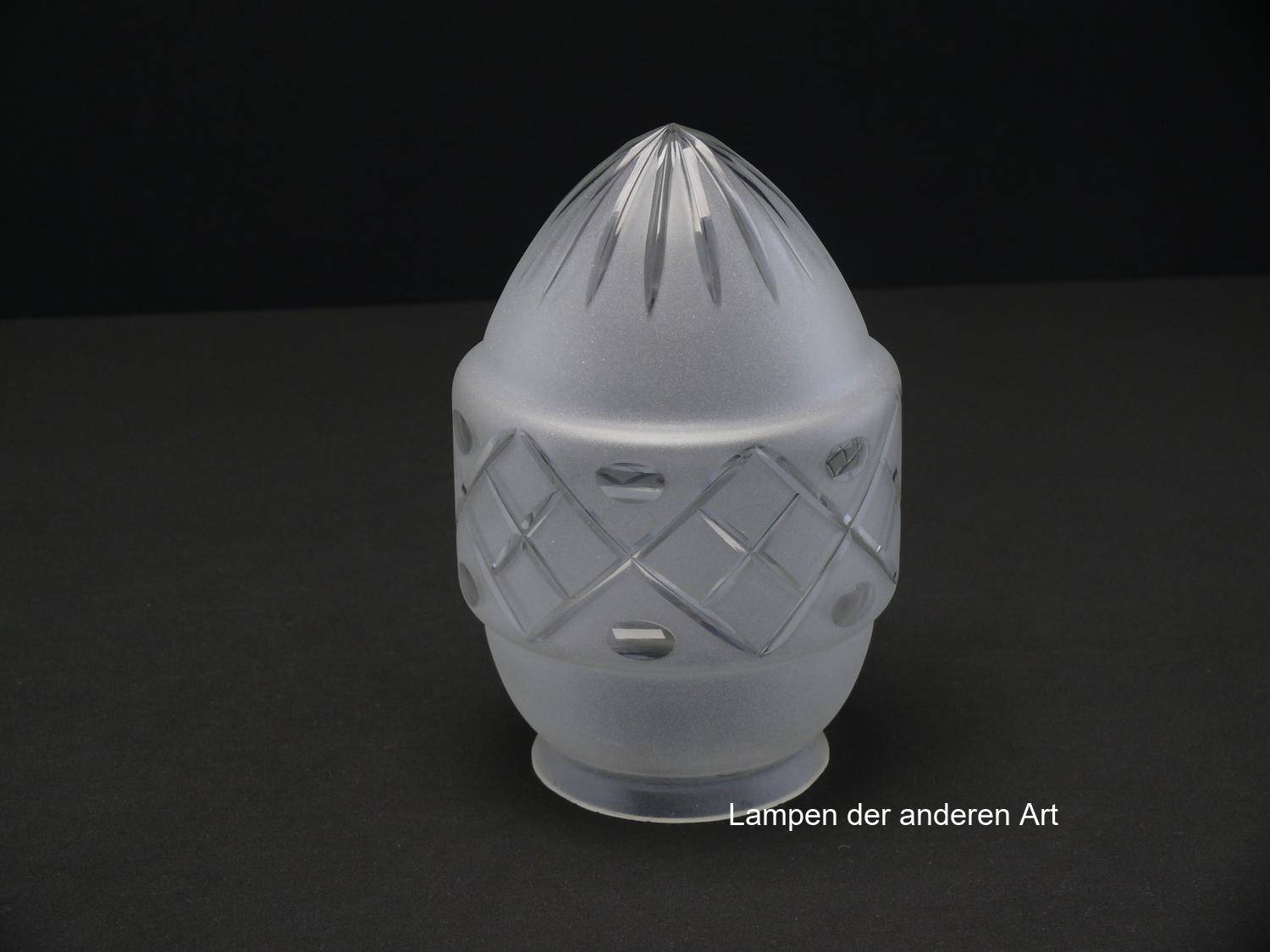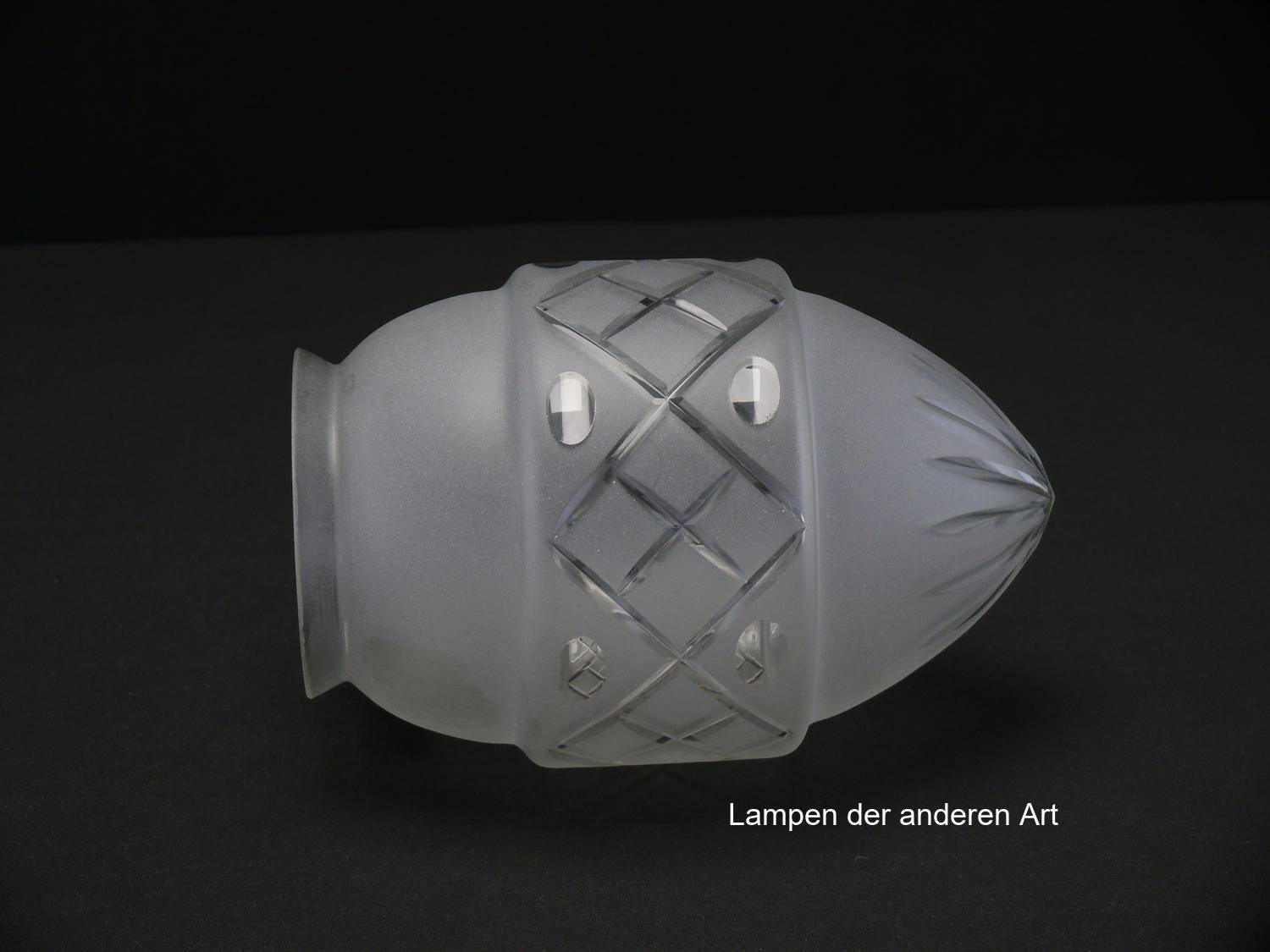 Jugendstil Lampenschirm gebraucht, antikes Glas grau satiniert, Zapfenform spitz zulaufend, Wandung mittig als breites Band hervortretend durchgehendes Schliffmuster, Spitze im Unterteil Dekor Strahlenschliff, Nostalgieglas, Ersatzschirm für alte Lampen, D: ca.11cm, H: ca.16cm, Glashalter Griffrand 8cm - gemessen 7,8cm