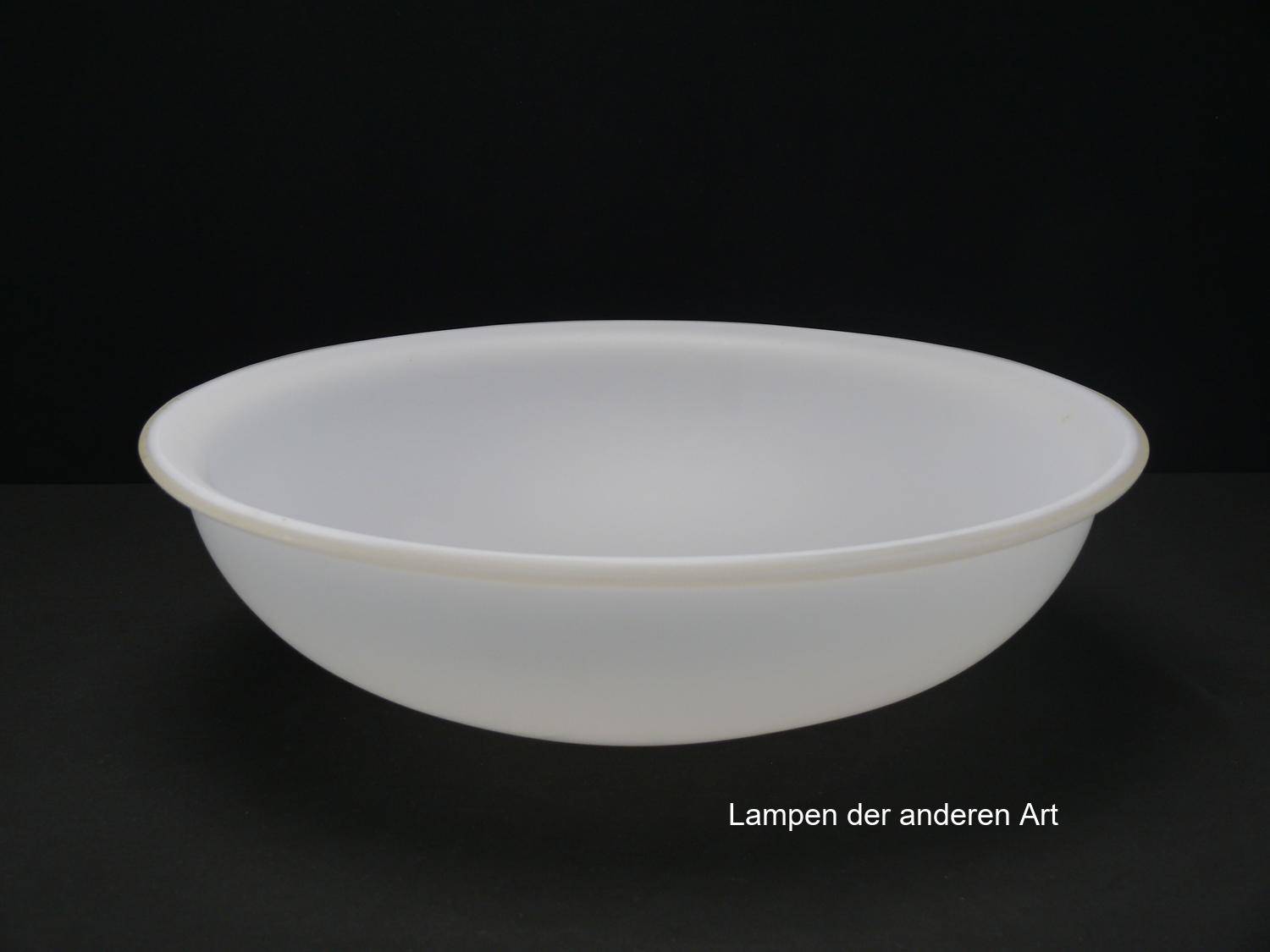 Jugendstil Lampenschirm gebraucht, flache Schüsselform, opal weiß, Nostalgieglas, Ersatzschirm für alte Lampen, Durchmesser ca.35cm, H: ca.10cm, ohne Glashalter Griffrand, zum Einlegen z.B. in Hängeleuchte oder Deckenleuchte, Auflegerand ca.1cm breit