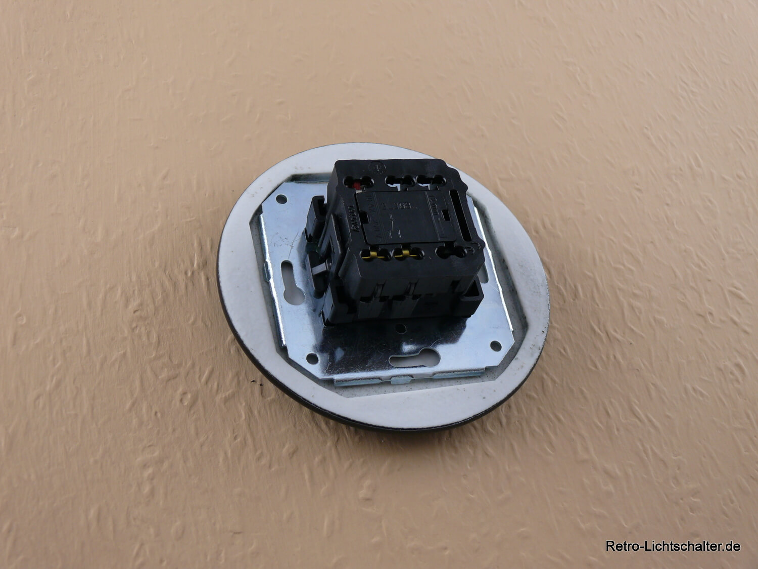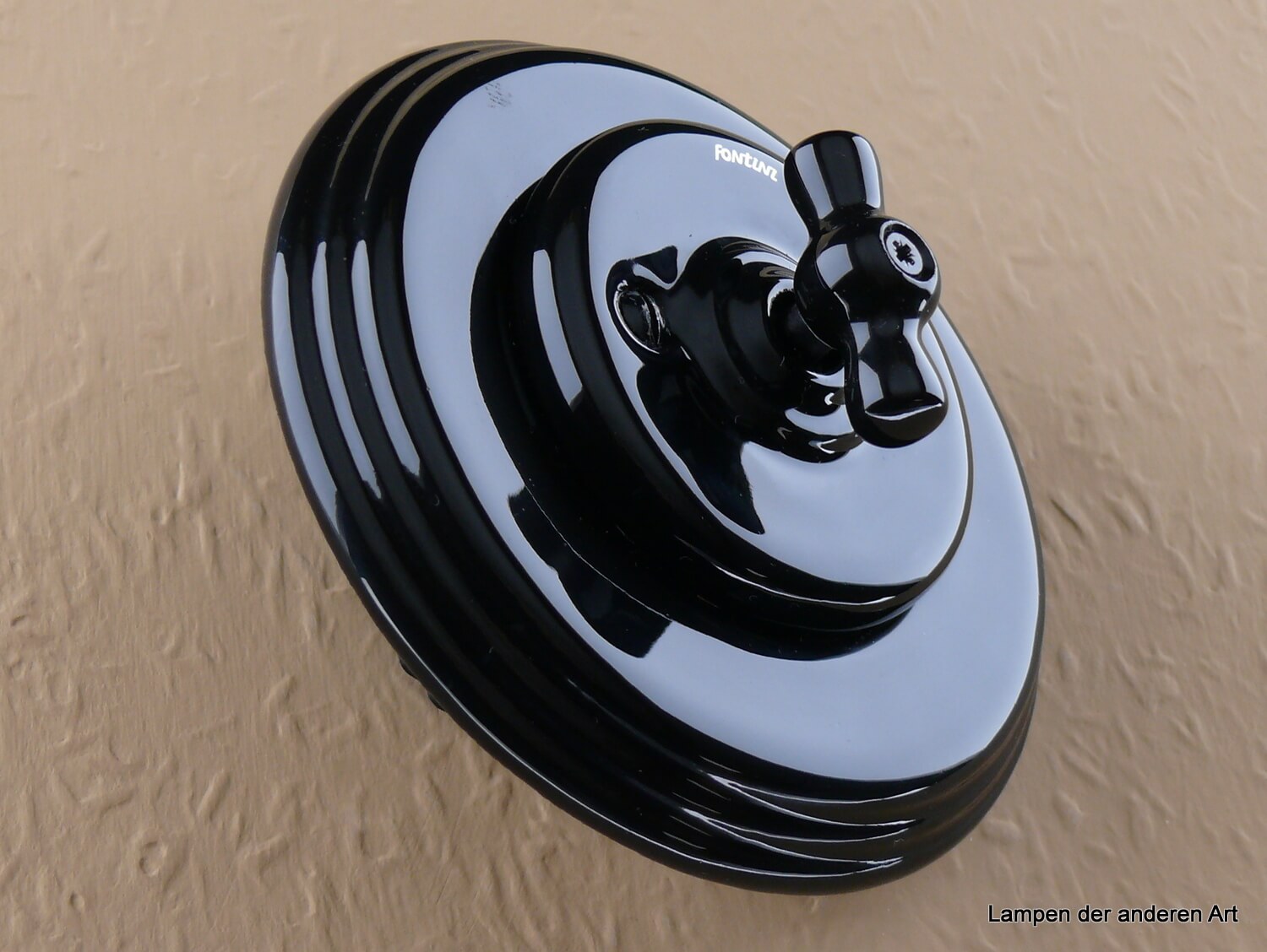 Mit seinem runden profilierten Einfachrahmen aus schwarzem Porzellan, ist er eine Hommage an den guten alten Porzellandrehschalter, der in vergangenen Zeiten weit verbreitet war. Das zeitlose Design und die hochwertigen Materialien bringen einen Hauch von Nostalgie und Eleganz in Ihre Räume.