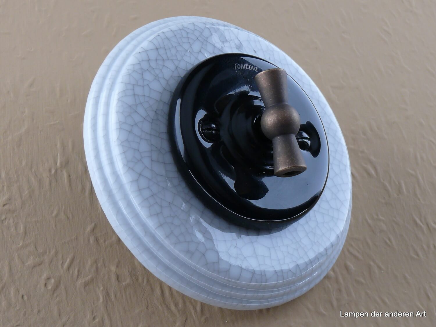 Mit seinem runden profilierten Einfachrahmen aus craqueliertem Porzellan, ist er eine Hommage an den guten alten Porzellandrehschalter, der in vergangenen Zeiten weit verbreitet war. Das zeitlose Design und die hochwertigen Materialien bringen einen Hauch von Nostalgie und Eleganz in Ihre Räume.