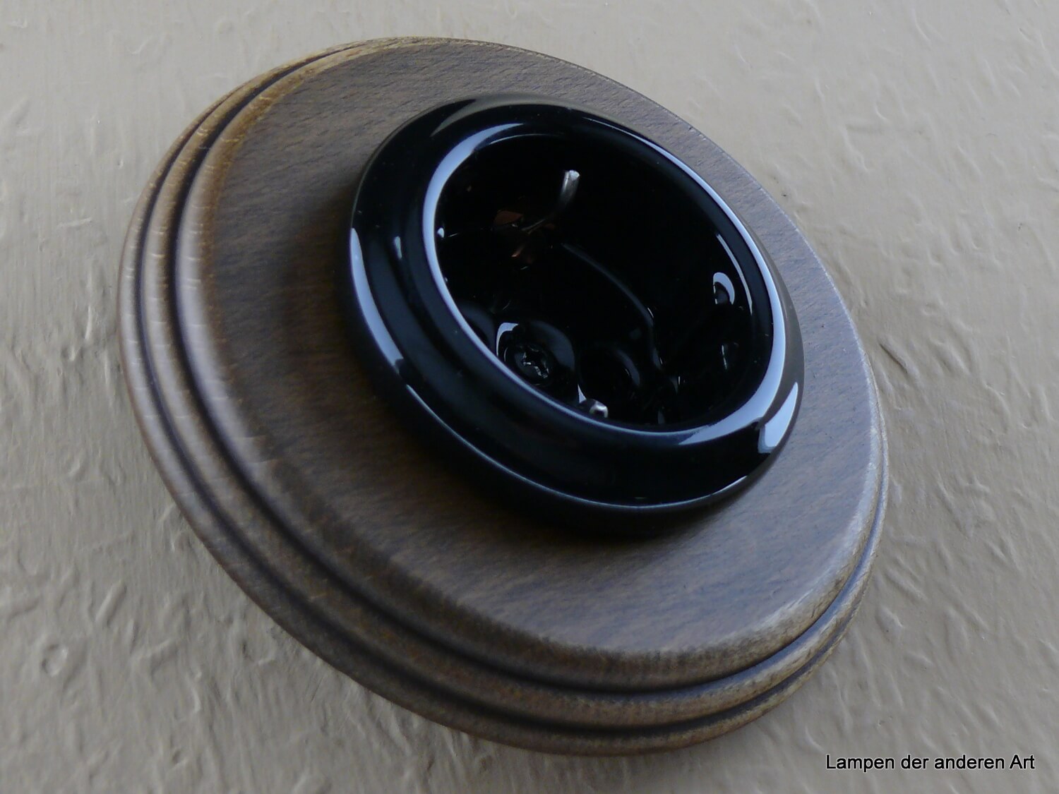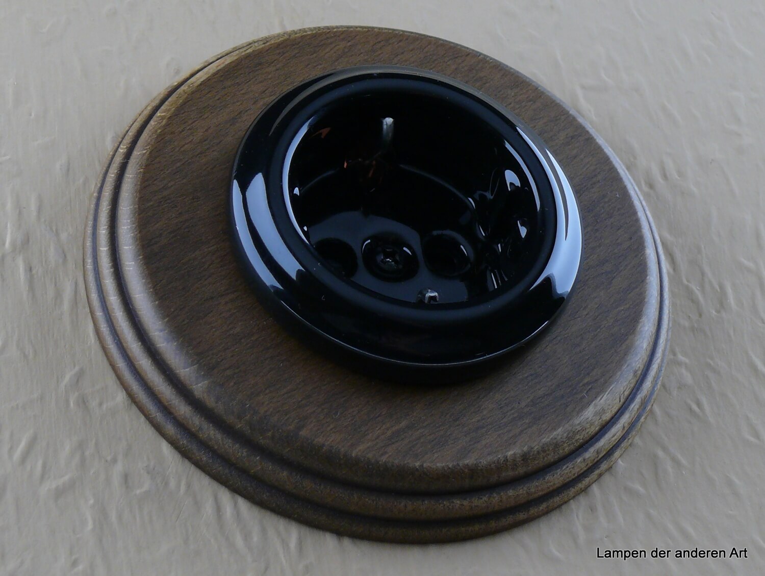 Mit dem runden Design verleiht sie Ihrem Raum eine elegante klassische Note. Der aus schwarzem Porzellan gefertigte Steckdoseneinsatz wird komplettiert von einem Einfachrahmen welcher aus massivem gealtertem Buchenholz besteht. Durch den Schraubklemmenanschluss ist eine einfache und sichere Installation gewährleistet. Zudem ist die Steckdose mit einem integrierten Kinderschutz ausgestattet und besitzt eine VDE Zertifizierung. Sie passt problemlos in alle gängigen Unterputzdosen und vereint Funktionalität mit einem ansprechenden Retro-Look. Natürlich können Sie diese auch in Mehrfachkombinationen z.B als 2fach Steckdose, 3fach Steckdose oder in Kombination mit den klassischen Porzellandrehschaltern über unseren Shop beziehen. Wenn Sie Fragen haben sprechen Sie uns gerne an. Wir sind eine eingetragene Elektroinstallationsfirma und kennen uns mit den Produkten bestens aus, da wie diese auch bei unseren Kunden installieren. Mit anderen Worten: Wir wissen was wir verkaufen.