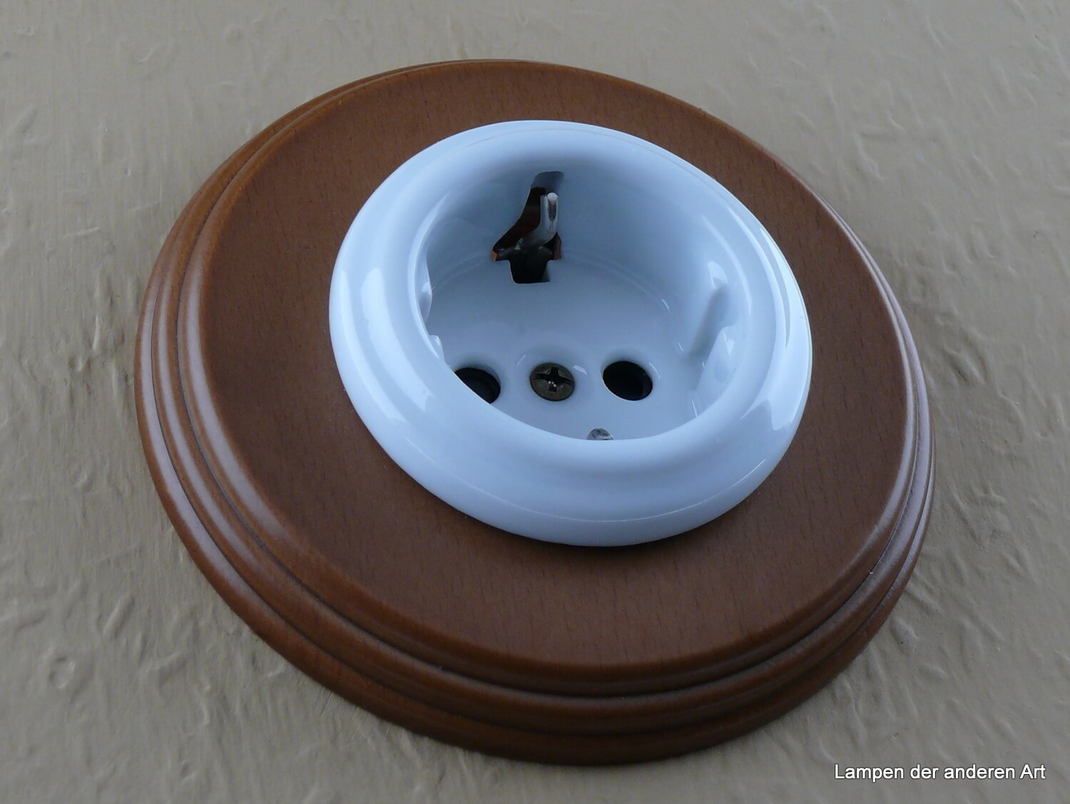 Mit dem runden Design verleiht sie Ihrem Raum eine elegante klassische Note. Der aus weißem Porzellan gefertigte Steckdoseneinsatz wird komplettiert von einem Einfachrahmen welcher aus massivem honigfarbenem Buchenholz besteht. Durch den Schraubklemmenanschluss ist eine einfache und sichere Installation gewährleistet. Zudem ist die Steckdose mit einem integrierten Kinderschutz ausgestattet und besitzt eine VDE Zertifizierung. Sie passt problemlos in alle gängigen Unterputzdosen und vereint Funktionalität mit einem ansprechenden Retro-Look. Natürlich können Sie diese auch in Mehrfachkombinationen z.B als 2fach Steckdose, 3fach Steckdose oder in Kombination mit den klassischen Porzellandrehschaltern über unseren Shop beziehen. Wenn Sie Fragen haben sprechen Sie uns gerne an. Wir sind eine eingetragene Elektroinstallationsfirma und kennen uns mit den Produkten bestens aus, da wie diese auch bei unseren Kunden installieren. Mit anderen Worten: Wir wissen was wir verkaufen.