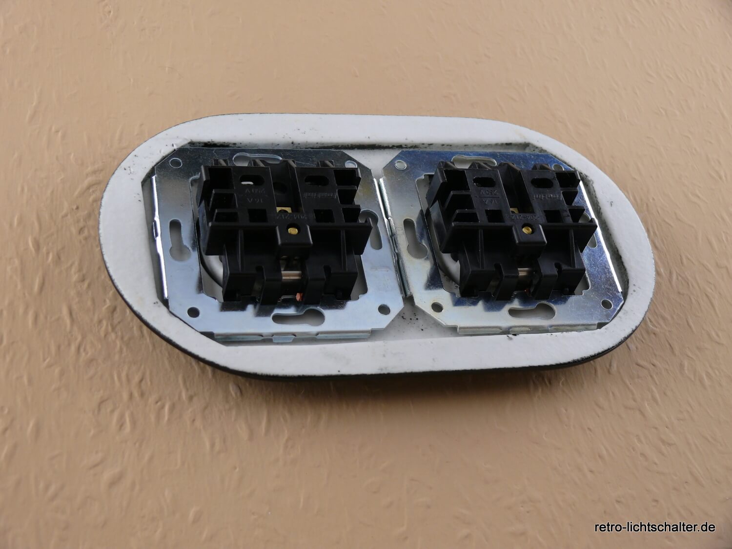 Die beiden aus schwarzem Porzellan gefertigten Schukosteckdoseneinsätze werden von einem ebenfalls aus schwarzem Porzellan gefertigten Zweifachrahmen zentriert. Die Montage ist horizontal oder vertikal möglich. Durch den Steckklemmenanschluss ist eine einfache und sichere Installation gewährleistet. Zudem ist die Steckdose mit einem integrierten Kinderschutz ausgestattet und besitzt eine VDE Zertifizierung. Sie passt problemlos in alle gängigen Unterputzdosen und vereint Funktionalität mit einem ansprechenden Retro-Look. Natürlich können Sie diese auch in anderen Kombinationen z.B als 1fach Steckdose, 3fach Steckdose oder in Kombination mit den klassischen Porzellandrehschaltern über unseren Shop beziehen.