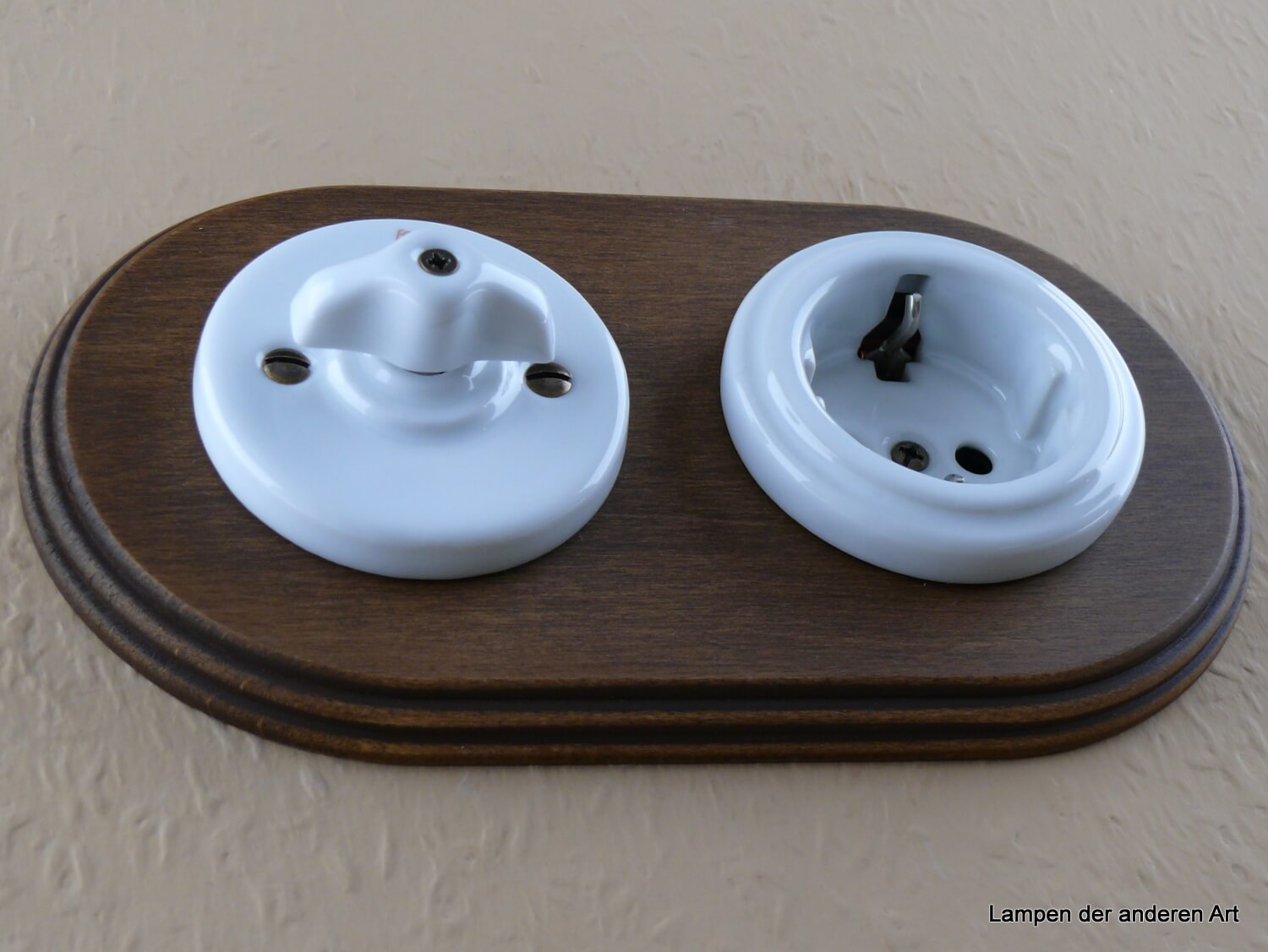 Steckdoseneinsatz ebenfalls aus weißem Porzellan, Montage horizontal oder vertikal möglich