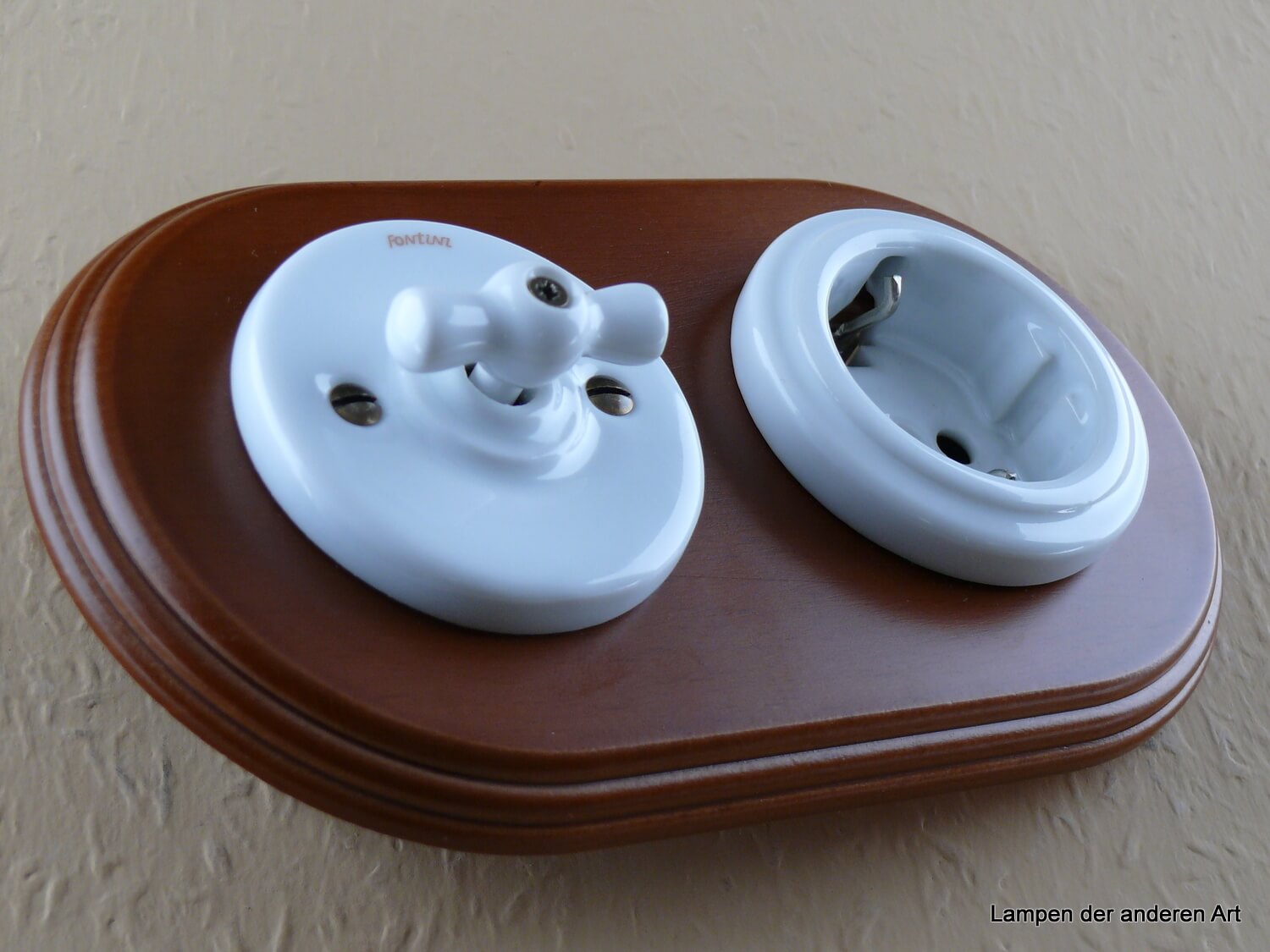 Diese Schalter-Steckdosen Variation aus edlem weißem Porzellan, eingebettet in einem ansprechenden 2fach Massivholzrahmen aus honigfarbener Buche, vereint zeitloses Design mit modernen Sicherheitsstandards. Als Schalter kommt ein Aus-Wechsel Mechanismus zum Einsatz (für beide Schaltungsvarianten geeignet). Diese Geräteverbindung ist auch mit einem Serienschalter in unserem Shop verfügbar (wenn Sie mit einem Schalter zwei verschiedene Leuchten schalten wollen – bei herkömmlichen Schaltern Doppelwippe - in der Artikelnummer steht anstatt - AW dann - SS). Mit seinem Drehknebel aus weißem Porzellan verleiht er der Kombination eine einzigartige Vintage-Note und sorgt für eine angenehme Bedienung. Der integrierte weiße Schuko-Steckdoseneinsatz ist mit einem effektiven Kinderschutz ausgestattet. Dunkel patinierte sichtbare Befestigungsschrauben ergänzen das Gesamtbild. Sowohl das Schaltwerk als auch die Steckdose sind VDE zertifiziert. Die Montage auf gängigen Unterputzdosen ist unkompliziert und ermöglicht eine problemlose Integration in bestehende und neue Elektroinstallationen. Die Installationsmaße finden Sie in den Bildern der Artikelbeschreibung.