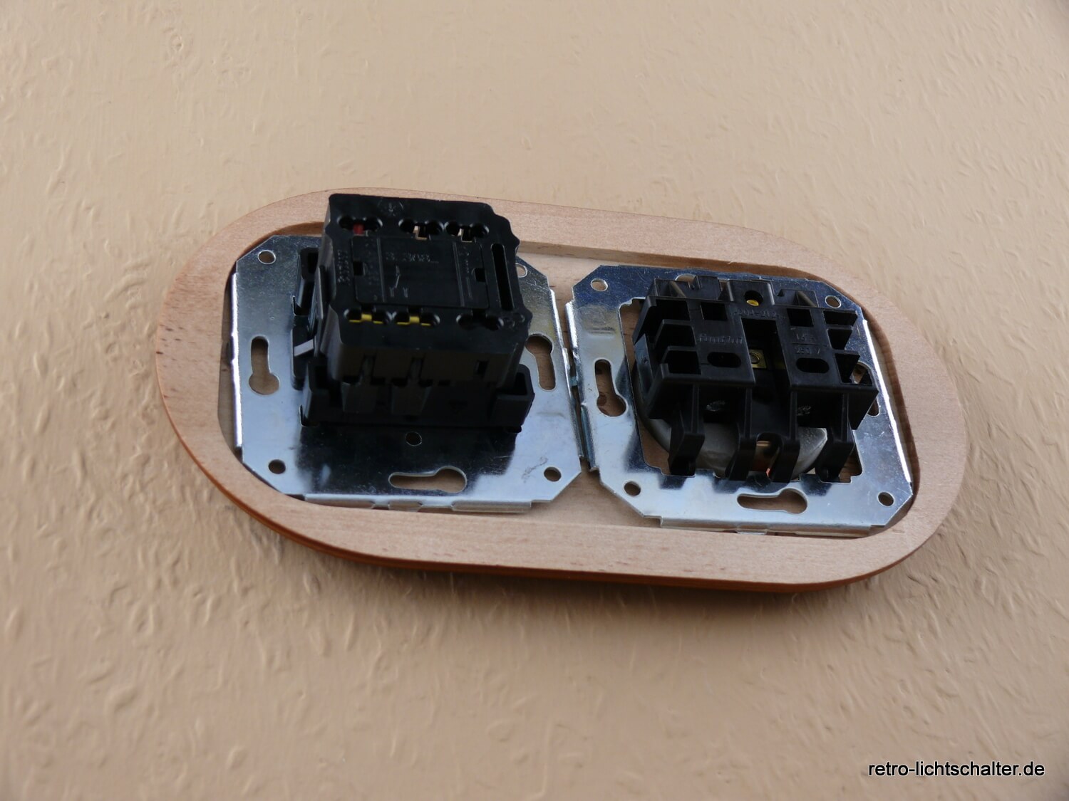 Diese Schalter-Steckdosen Variation aus edlem weißem Porzellan, eingebettet in einem ansprechenden 2fach Massivholzrahmen aus honigfarbener Buche, vereint zeitloses Design mit modernen Sicherheitsstandards. Als Schalter kommt ein Aus-Wechsel Mechanismus zum Einsatz (für beide Schaltungsvarianten geeignet). Diese Geräteverbindung ist auch mit einem Serienschalter in unserem Shop verfügbar (wenn Sie mit einem Schalter zwei verschiedene Leuchten schalten wollen – bei herkömmlichen Schaltern Doppelwippe - in der Artikelnummer steht anstatt - AW dann - SS). Mit seinem Drehknebel aus honigfarbener Buche verleiht er der Kombination eine einzigartige Vintage-Note und sorgt für eine angenehme Bedienung. Der integrierte weiße Schuko-Steckdoseneinsatz ist mit einem effektiven Kinderschutz ausgestattet. Dunkel patinierte sichtbare Befestigungsschrauben ergänzen das Gesamtbild. Sowohl das Schaltwerk als auch die Steckdose sind VDE zertifiziert. Die Montage auf gängigen Unterputzdosen ist unkompliziert und ermöglicht eine problemlose Integration in bestehende und neue Elektroinstallationen. Die Installationsmaße finden Sie in den Bildern der Artikelbeschreibung.