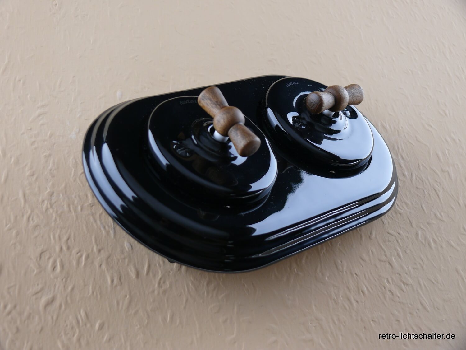Retro Porzellan Schalterkombination schwarz HEGC113AW