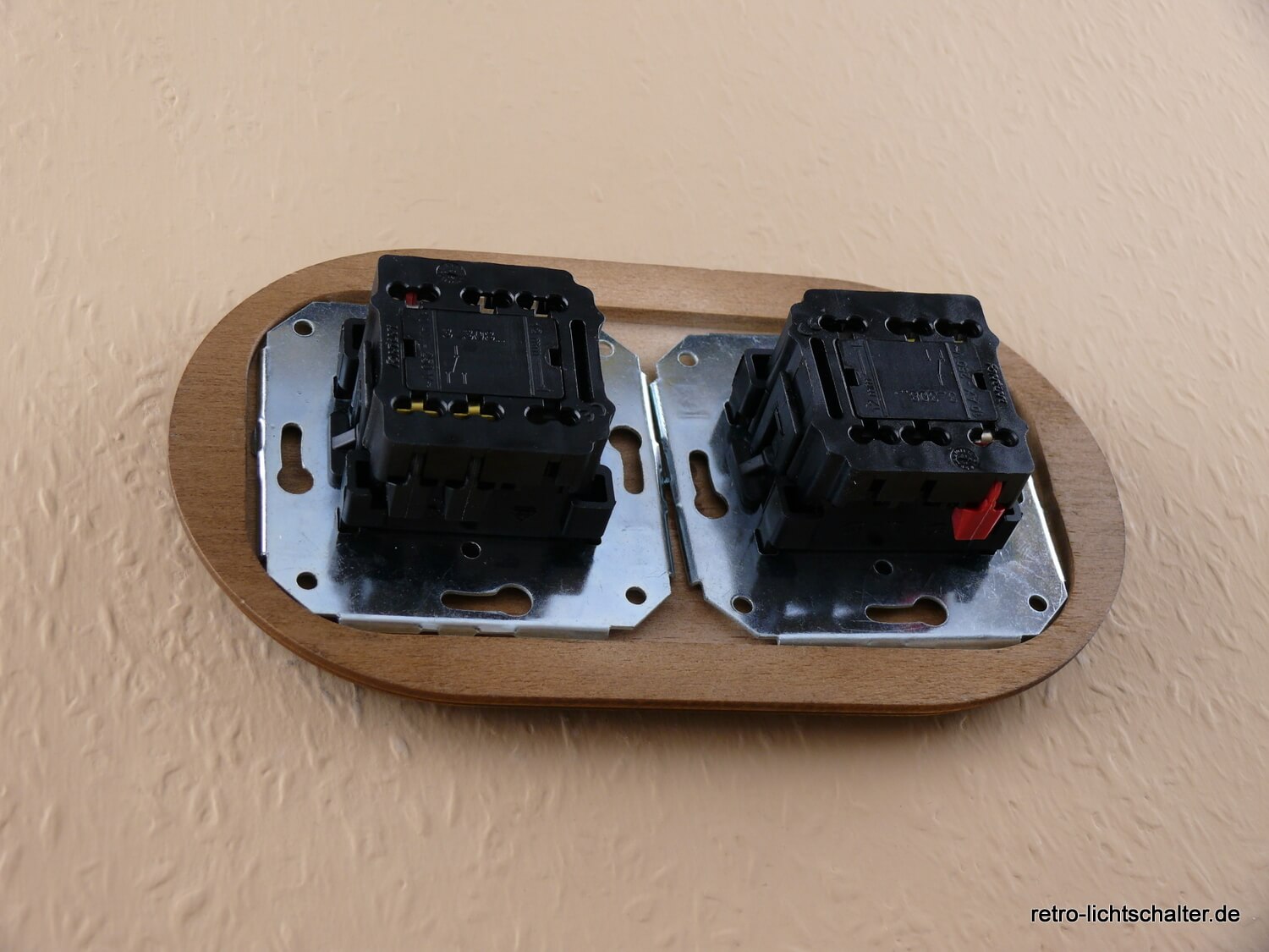 Diese Schalter-Variation aus edlem weißem Porzellan, eingebettet in einem ansprechenden 2fach Rahmen aus gealtertem und profiliertem Buchenholz, vereint zeitloses Design mit modernen Sicherheitsstandards. Als Schalter kommen zwei Aus-Wechsel Mechanismen zum Einsatz (für beide Schaltungsvarianten geeignet). Diese Geräteverbindung ist auch mit einem Serienschalter möglich (wenn Sie mit einem Schalter zwei verschiedene Leuchten schalten wollen – bei herkömmlichen Schaltern Doppelwippe). Bitte fragen Sie diese Kombination bei Bedarf an. Mit seinem Drehknebel aus weißem Porzellan verleiht er der Kombination eine einzigartige Vintage-Note und sorgt für eine angenehme Bedienung. Dunkel patinierte sichtbare Befestigungsschrauben ergänzen das Gesamtbild. Die Schaltwerke sind selbstverständlich VDE zertifiziert. Die Montage auf gängigen Unterputzdosen (nur Schraubbefestigung) ist unkompliziert und ermöglicht eine problemlose Integration in bestehende und neue Elektroinstallationen. Die Installationsmaße finden Sie in den Bildern der Artikelbeschreibung.