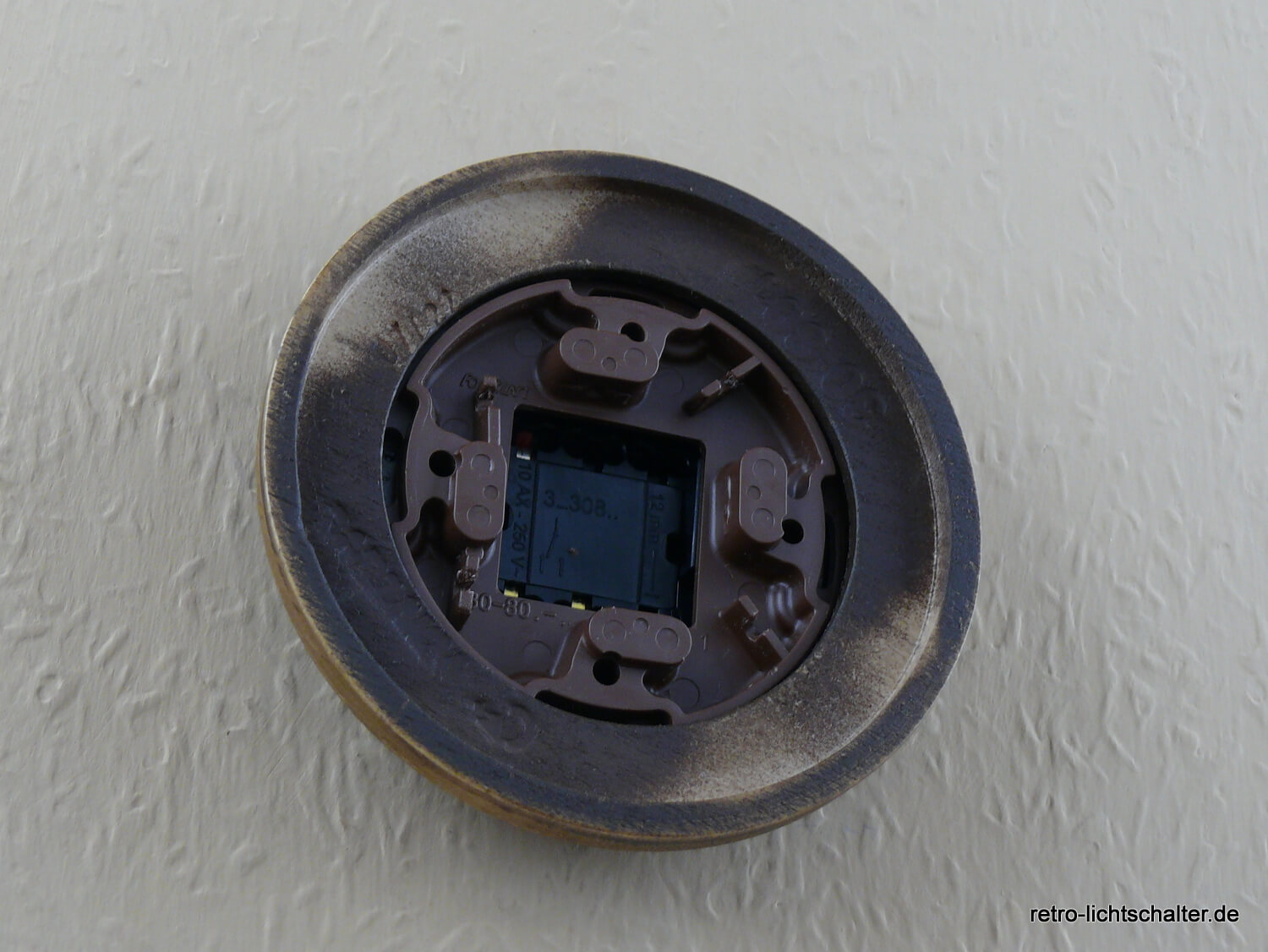Mit seinem runden profilierten Einfachrahmen aus gealtertem Buchenholz ist er eine Hommage an den guten alten Porzellandrehschalter, der in vergangenen Zeiten weit verbreitet war. Das zeitlose Design und die hochwertigen Materialien bringen einen Hauch von Nostalgie und Eleganz in Ihre Räume.