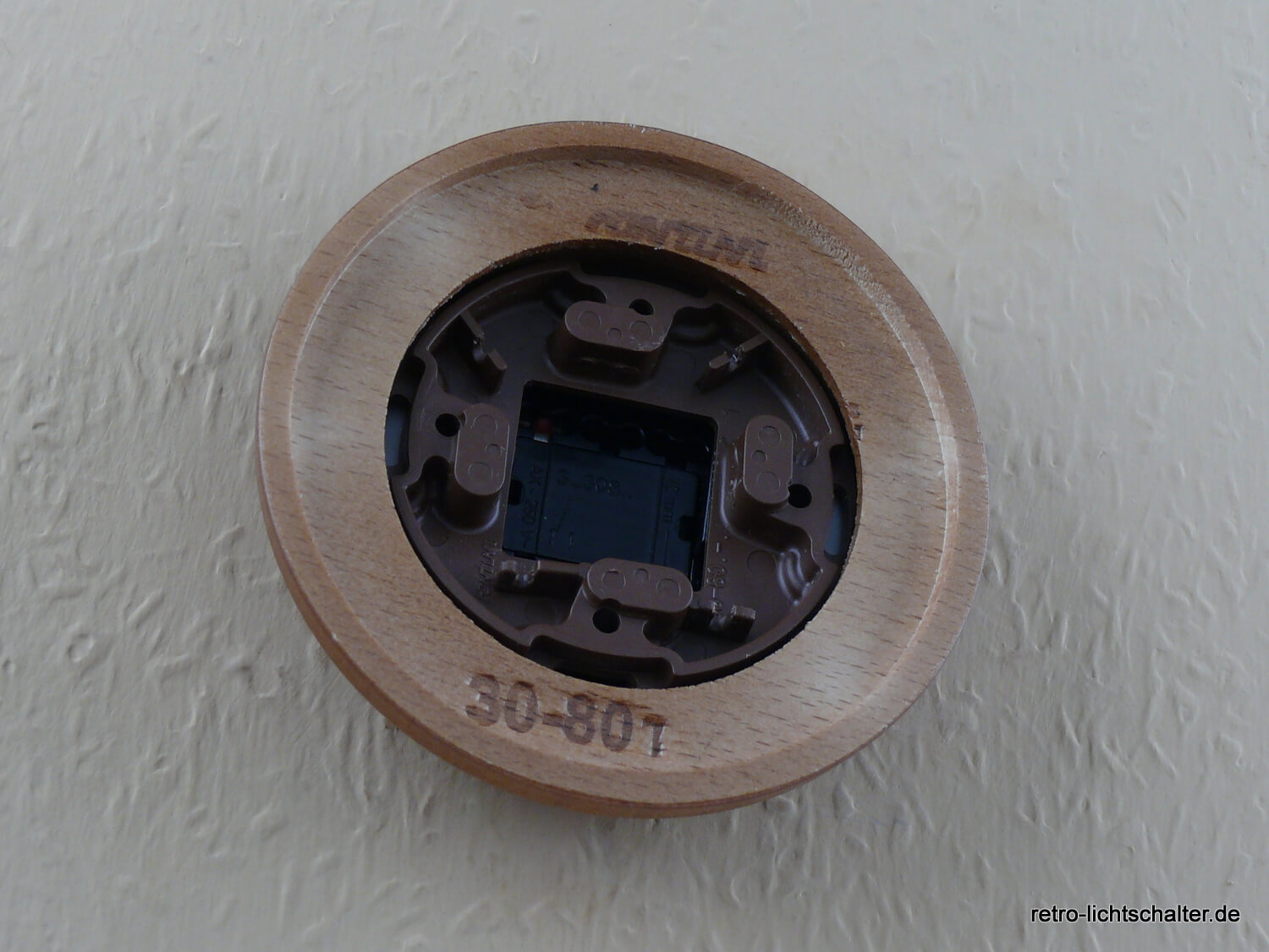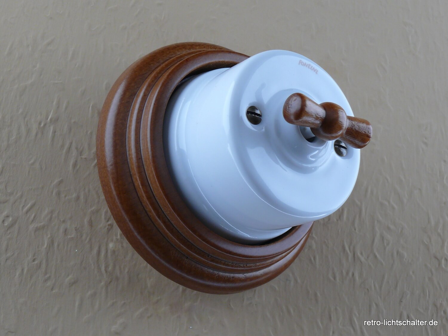Mit seinem runden profilierten Einfachrahmen aus massivem honigfarbenen Buchenholz ist er eine Hommage an den guten alten Porzellandrehschalter, der in vergangenen Zeiten weit verbreitet war. Das zeitlose Design und die hochwertigen Materialien bringen einen Hauch von Nostalgie und Eleganz in Ihre Räume.