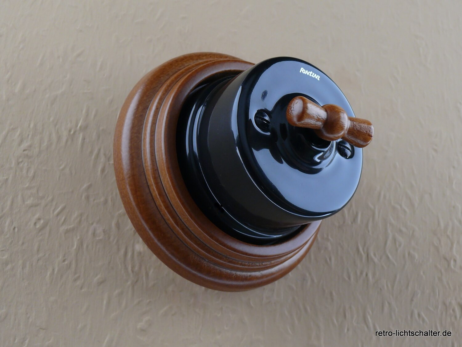 Großen Wert legen wir auf Qualität und Langlebigkeit. Der Schaltknebel des Garby Schalters besteht aus honigfarbenem Buchenholz. Zusammen mit den schwarzen Befestigungsschrauben ergibt sich ein harmonisches Gesamtbild. Das Schaltwerk ist mit einem VDE Zertifikat versehen und garantiert somit höchste Sicherheit und Zuverlässigkeit. Der Schalter ist zudem problemlos auf gängigen Unterputzdosen einsetzbar.