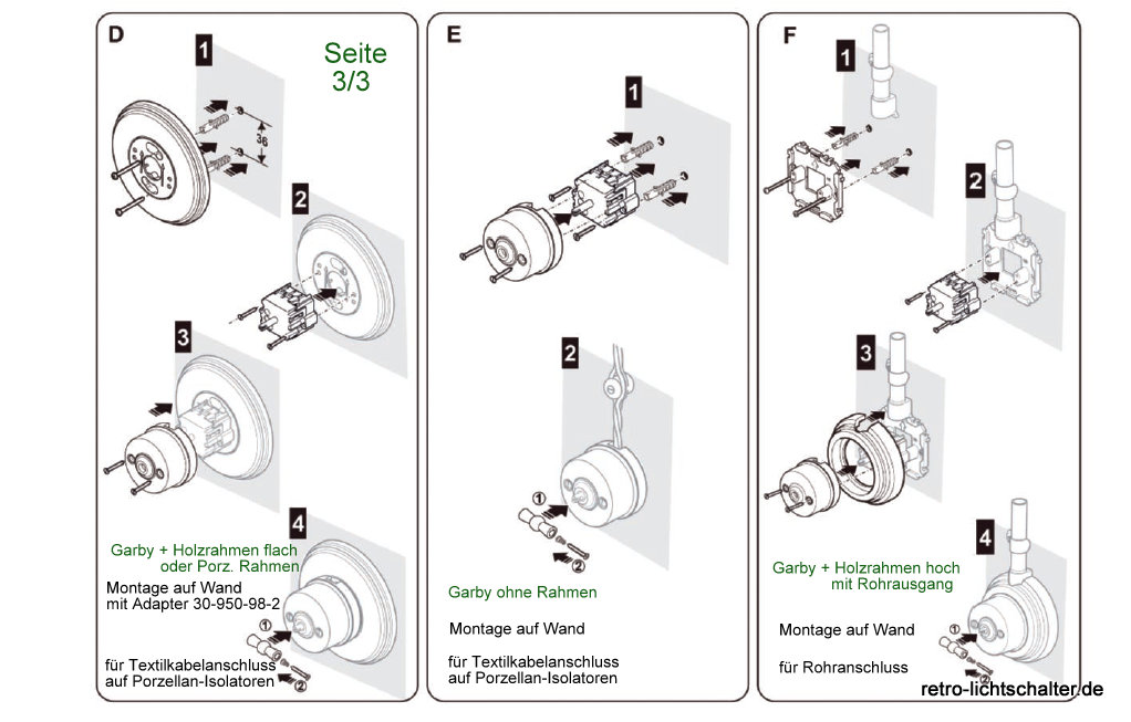 Unser Garby Schalter ermöglicht es Ihnen, den Schaltmechanismus an Ihre vorhandene Elektroinstallation anzupassen. Neben dem angebotenen Aus-Wechselschalter (für beide Schaltungsvarianten geeignet) sind auch andere Schaltmechanismen im Sortiment, z. B. Kreuzschalter, Rolladenschalter, zweipoliger Ausschalter sowie verschiedene Dreh- bzw. Drucktaster. Ebenso sind eine Vielzahl von Kommunikationssteckdosen lieferbar. Bitte sprechen Sie uns diesbezüglich gerne an. Wir sind eine eingetragene Elektroinstallationsfirma und kennen uns mit den Produkten bestens aus, da wie diese auch bei unseren Kunden installieren. Mit anderen Worten: Wir wissen was wir verkaufen.