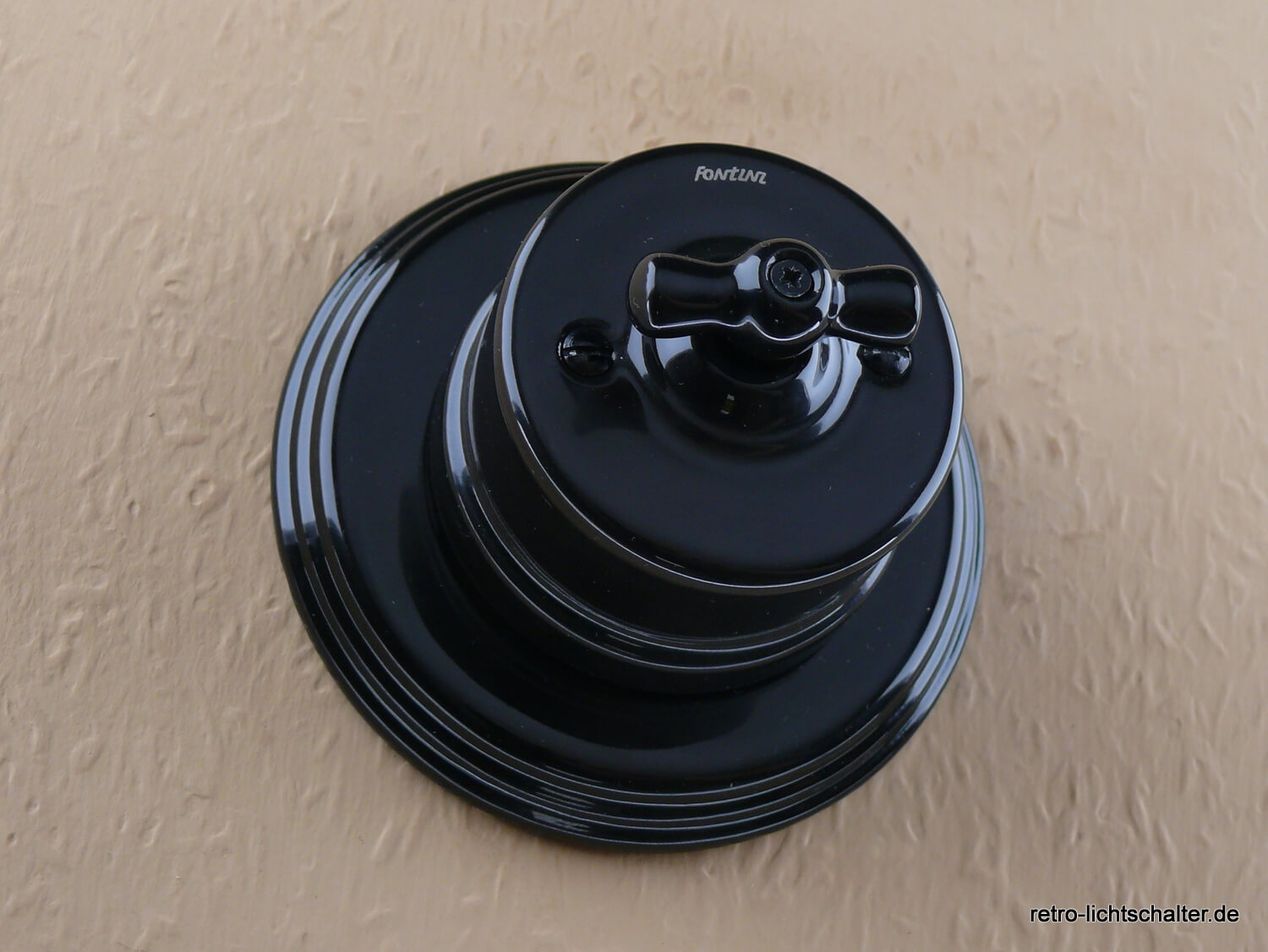 Garby - klassischer schwarzer Aufputz-Retro-Porzellandrehschalter für die Montage auf einer Unterputzanschlussdose