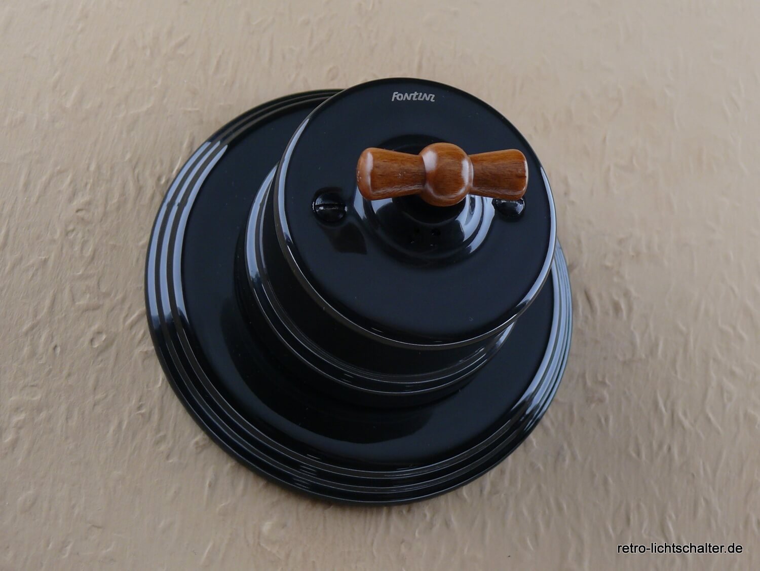 Garby - klassischer schwarzer Aufputz-Retro-Porzellandrehschalter für die Montage auf einer Unterputzanschlussdose