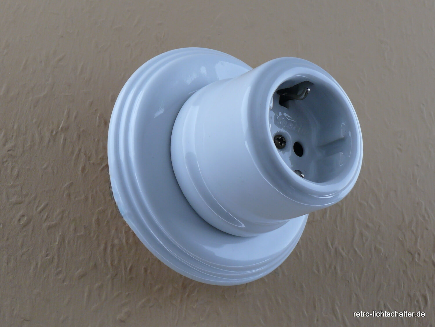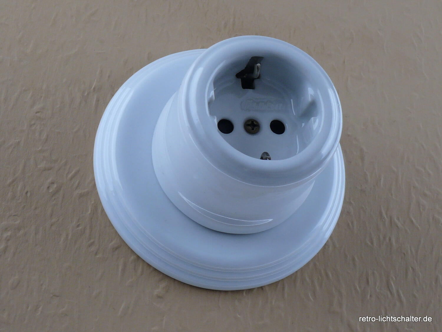 Startseite » Porzellanschalter » Garby » Einzelgeräte Garby » Retro Schuko Porzellansteckdose HEG033-SD.w