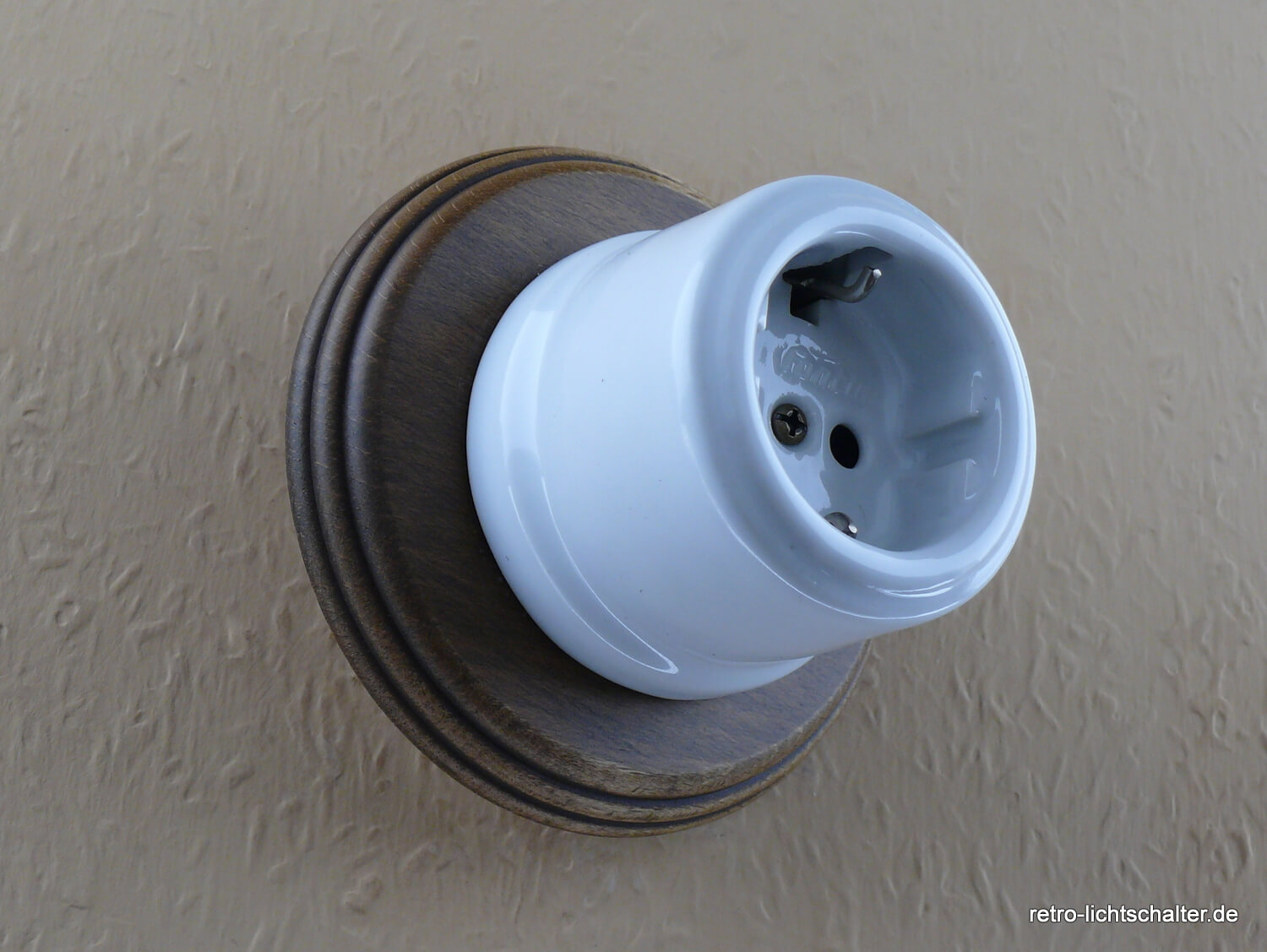 Startseite » Porzellanschalter » Garby » Einzelgeräte Garby » Retro Schuko Porzellansteckdose HEG042-SD.w
